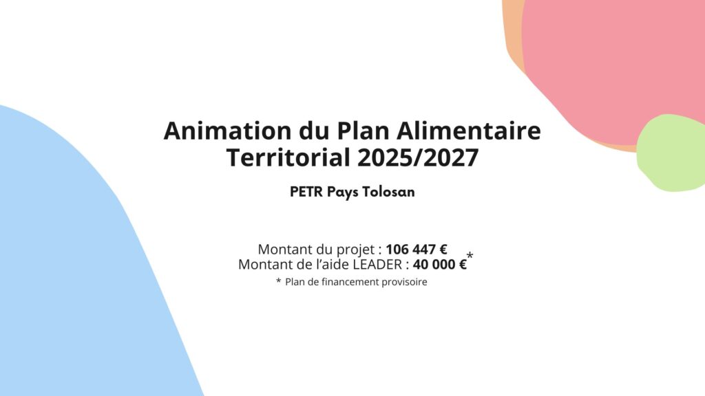 Le Plan Alimentaire de Territoire du Pays Tolosan permet de coordonner l’action publique et privée pour des projets d’animation territoriale, de service et de production de denrées. L’animation de ce PAT a pour objectif d’impulser une dynamique durable par la création d’un collectif autour de l’alimentation en charge d’identifier les problématiques du territoire et de dégager de nouvelles pistes de réflexion sur lesquelles travailler à l’avenir.