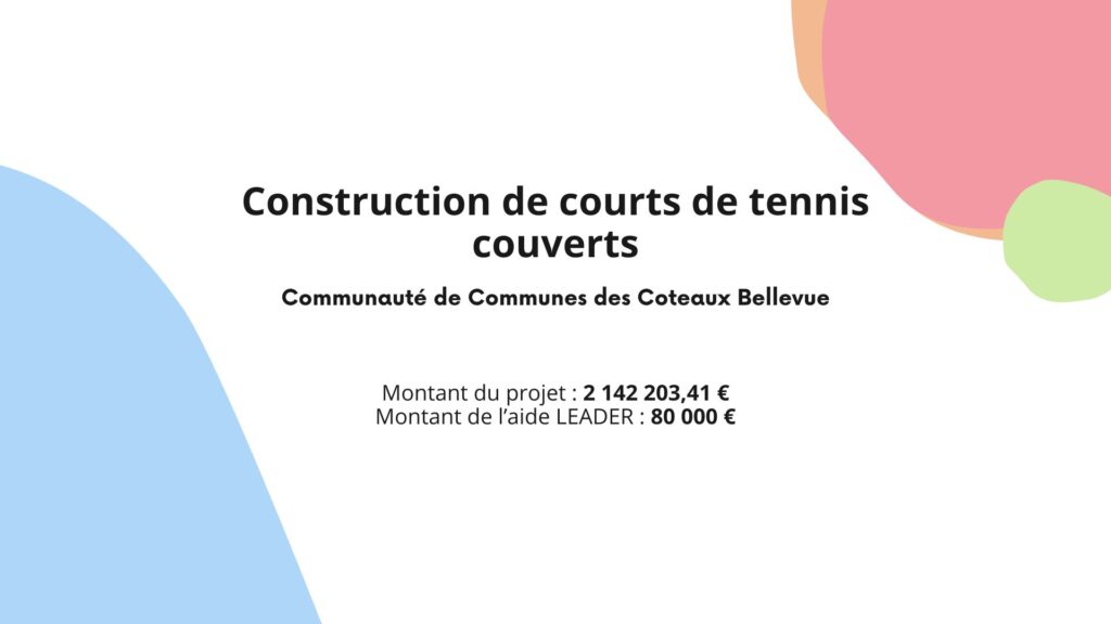 Le tennis est une activité créatrice de dynamisme sur la Communauté de Communes tant au niveau sportif que social. De nombreux tournois sont organisés par les acteurs associatifs tout au long de l’année, et cela anime la vie sociale et sportive du territoire. L’EPCI a souhaité soutenir cette dynamique à l’échelle de son territoire par la construction de six terrains de tennis couvert.