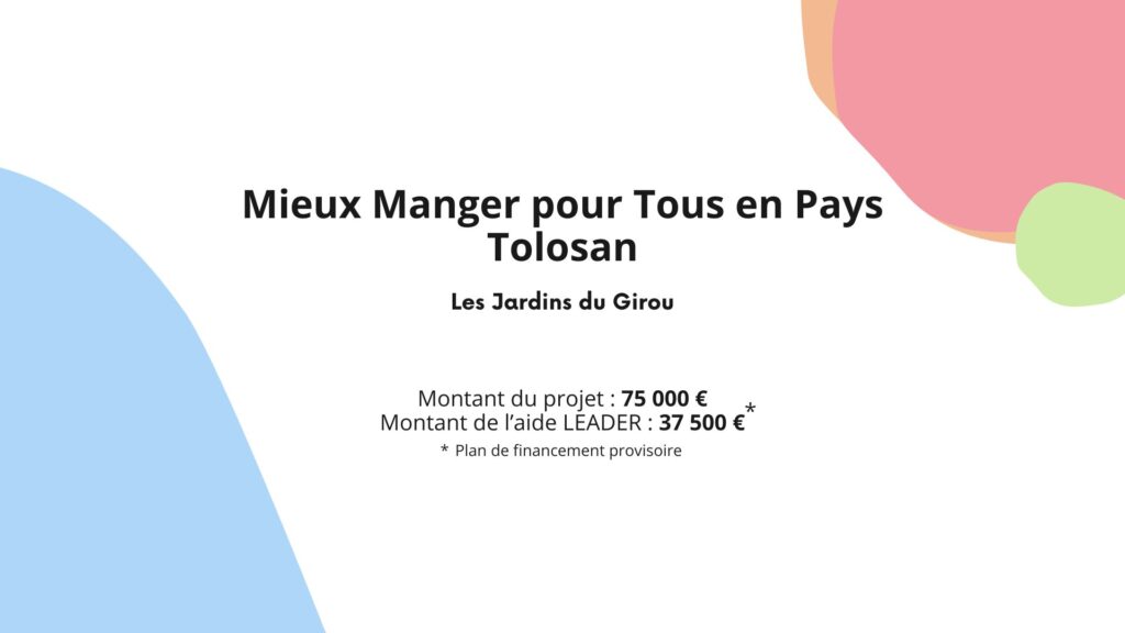 En lien avec les acteurs de l’accessibilité alimentaire du territoire une réflexion a été mené afin de constituer un plan d’actions et de projets opérationnels. Cela s’est traduit par la réalisation du pôle légumier bio, le Relais Cocagne, les espaces tests et le chantier d’insertion maraîchage. Cet ensemble d’actions nécessite un travail d’animation organisé par Les Jardins du Girou.