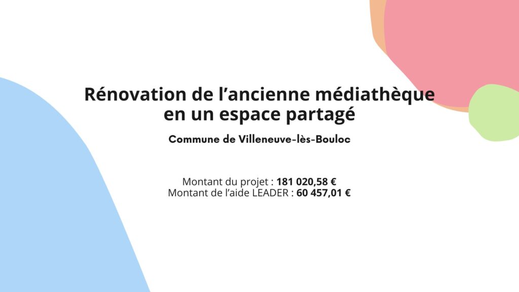 Pour répondre aux besoins des nouveaux administrés, la commune de Villeneuve-Lès-Bouloc a souhaité rénover l’ancienne médiathèque pour en faire un espace partagé à destination de l’enfance et de la petite enfance. L’aménagement des locaux permet aujourd’hui de répondre à la demande des associations d’assistantes maternelles pour pouvoir accueillir de jeunes enfants (wc pour petits,- table à langer, etc…).