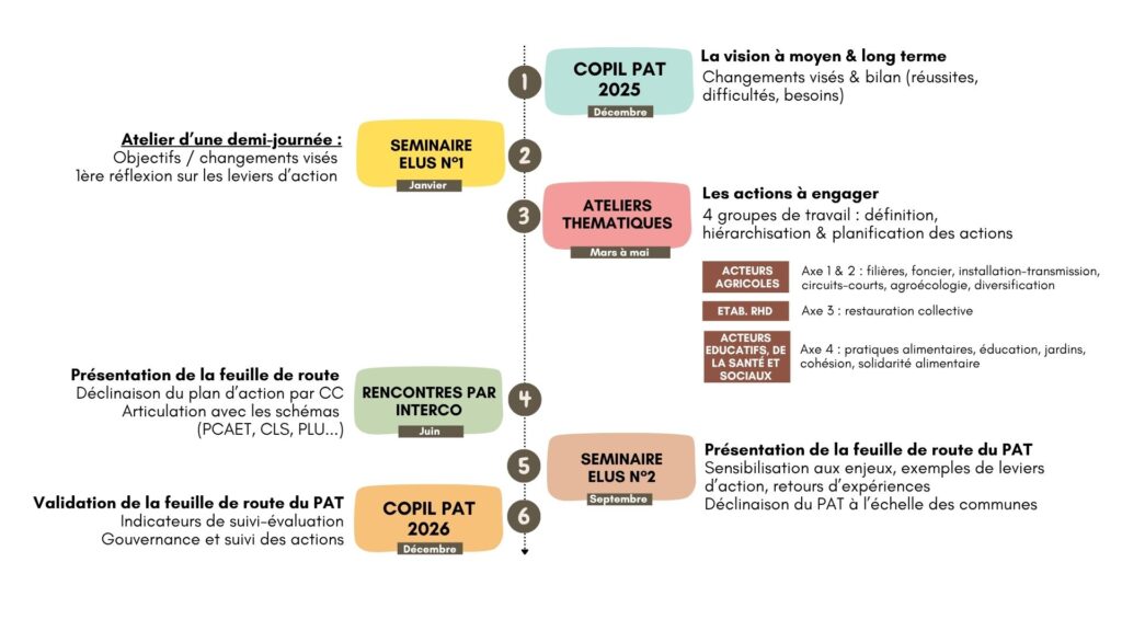Tout au long de l’année 2026, des temps de travail seront prévus autour de ces différents axes avec les élus, les acteurs sociaux, éducatifs et de la santé, les établissements de restauration collective ainsi que les professionnels agricoles.